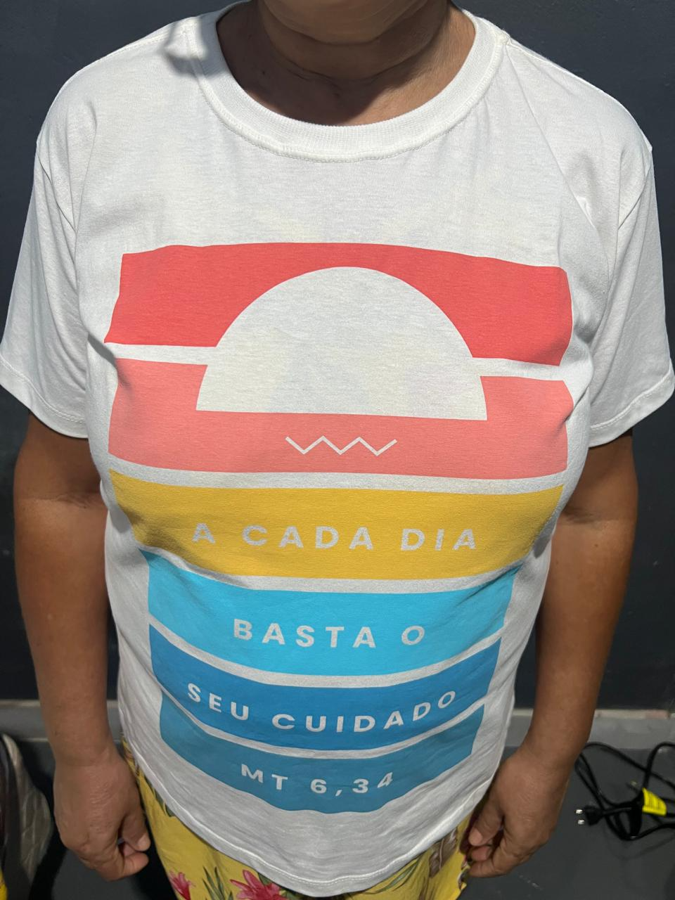 A baby look A cada dia basta o seu cuidado é confeccionada em 100% algodão, na cor off white.