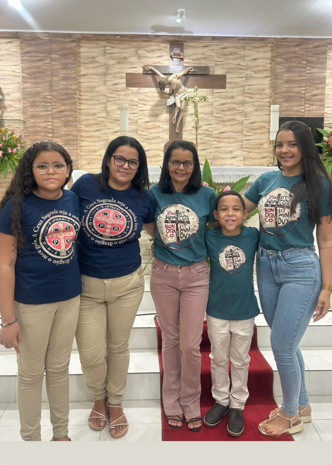 A Baby Look Medalha das Duas Cruzes – Petróleo é confeccionada em cotton (96% algodão e 4% elastano), na cor petróleo. Uma peça básica e muito confortável para vestir no dia a dia, expressar sua devoção e contar sempre com a proteção Divina.