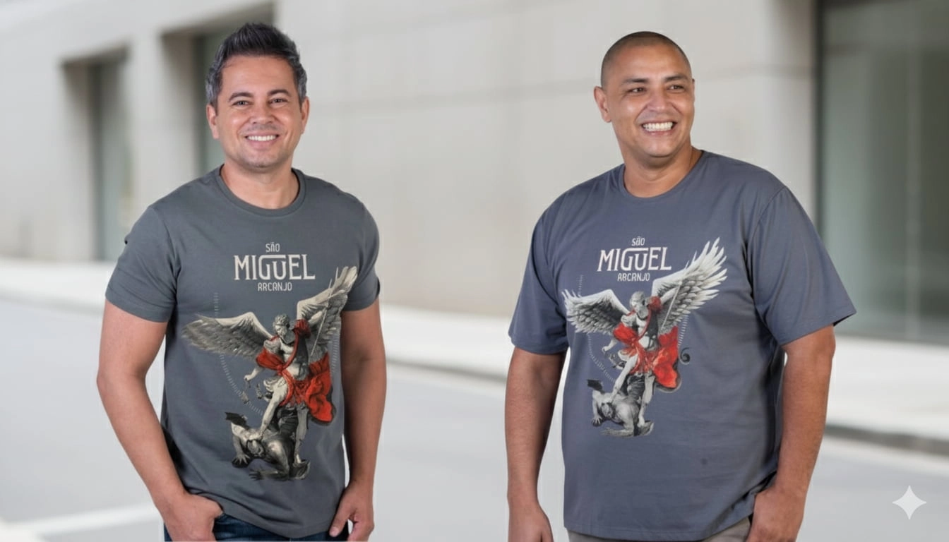 As blusas masculinas da Canção Nova representam símbolos sagrados, santos e frases de proteção e devoção. Confira as camisetas religiosas que são destaque na loja: